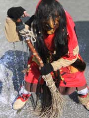 Die Kreuzblitzhexen Grafenaus haben Ihren Ursprung im Mittelalter, als die Weiber der Bauern tagelang in den Wäldern Grafenaus ausharren mussten, bevor sie sich auf die Suche nach Ihren Liebsten begeben konnten. Aus dieser Zeit stammt auch die traditionelle Kleidung. Das ockerfarbene Oberteil schützte sie in den Nächten vor der beißenden Kälte und Nässe, welche sie ertragen mussten. Die Flicken, mit denen die Stoffe versehen sind, zeugen von der Not dieser Epoche. Es war ein Ding der Unmöglichkeit, sich neue Kleidung zu beschaffen. So mussten Sie ihre geschundenen Leiber fast ein Leben lang mit Gewändern bedecken, welche zum Teil aus vorhergehenden Generationen vermacht wurde. Der dunkelbraune Rock half geschickt dabei, den Dreck der Ernte zu verbergen. Ein besonderes Augenmerk gilt dem saftig Roten Halstuch, welches die Blicke der Männer auf die weiblichen Reize lenken sollte, sowie die handgefertigten schwarz-roten Socken, welche die Waden der Weiber wärmte. Der Besen der Hexen diente nicht nur dazu Haus und Hof zu reinigen, sondern auch ungebetenen Gästen, sowie aufdringlichem Dorfgesindel Manieren zu lehren.